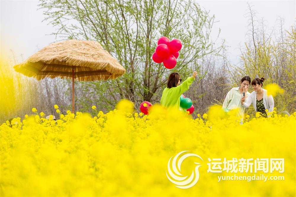 近日,运城盐湖岸畔的油菜花竞相绽放,美不胜收,吸引了众多游客前来踏青打卡。