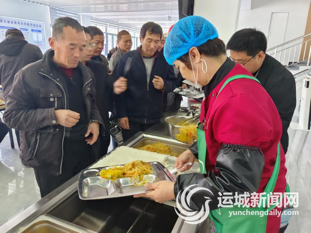 务工人员在运城零工市场餐厅打饭。