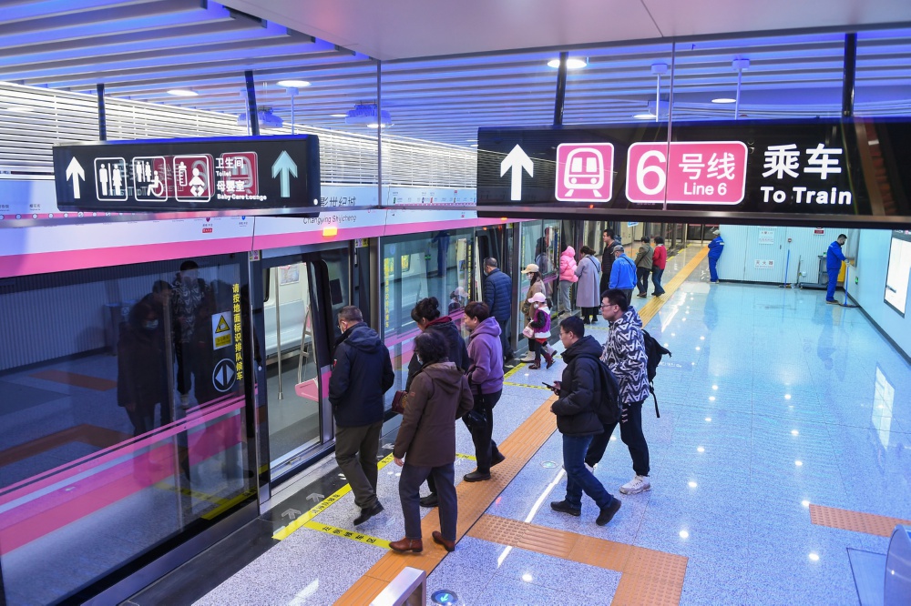 3月28日,市民在长春轨道交通6号线长影世纪城站乘车。