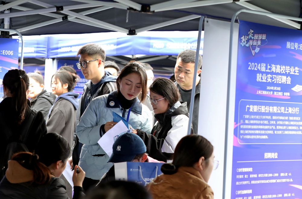 当日,“2024上海高校毕业生就业实习招聘会”在上海工程技术大学体育场举办。本次招聘会以“职业规划+实习见习+就业招聘”的全流程就业赋能模式,力促上海高校毕业生就业,有1200余家用人单位进场招聘,提供岗位3600余个。