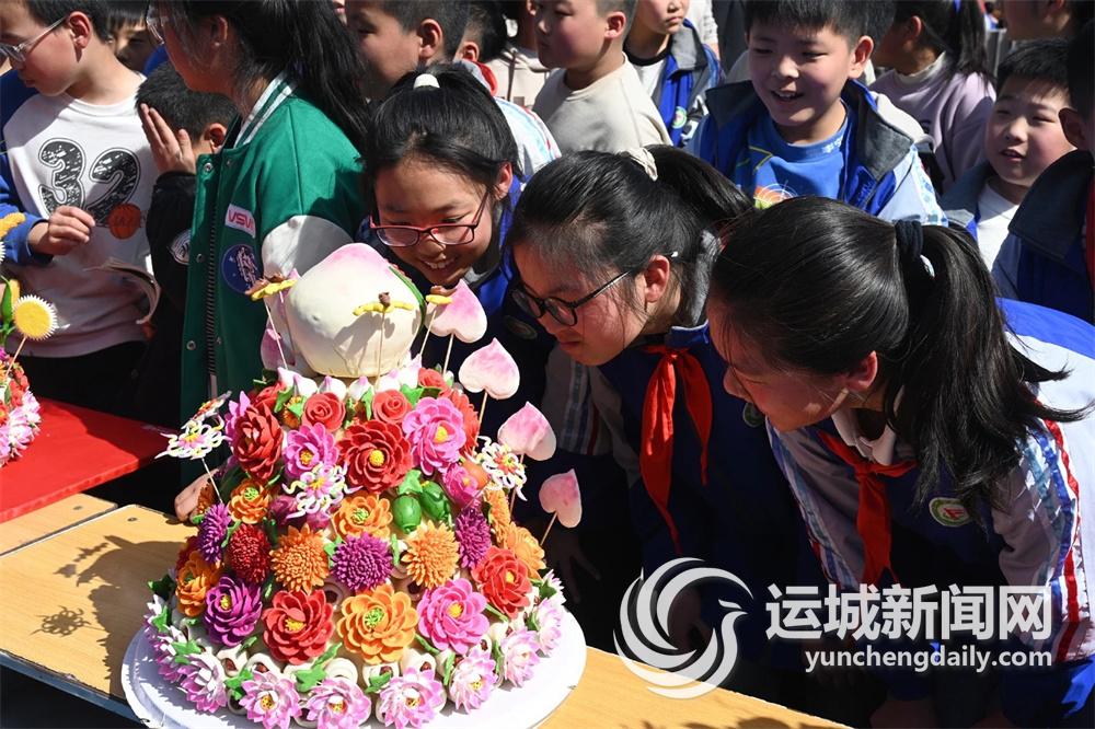 在当天的活动中,学子们收看了《2024中国诗词大会》“闻喜花馍”片段。同时,闻喜花馍传承人朱雪冰还带来了多种花馍、花糕,并现场讲解花馍非遗文化。精美的花馍引起了学子们的兴趣,他们近距离欣赏、了解,探知花馍背后的故事。闻喜县东街实验小学有关负责人表示,将以此次活动为契机,引进更多的非遗项目,丰富孩子们的校园生活,加深他们对中华优秀传统文化的认知,让学生成为非遗文化的传承者和传播者。