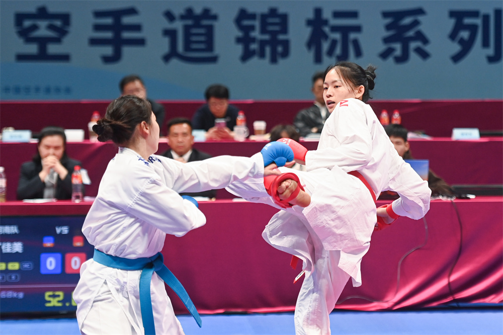当日,2024年全国空手道锦标系列赛在浙江省杭州市临平区体育中心体育馆开幕,共有来自全国各地的20支代表队、256名空手道运动员参赛。