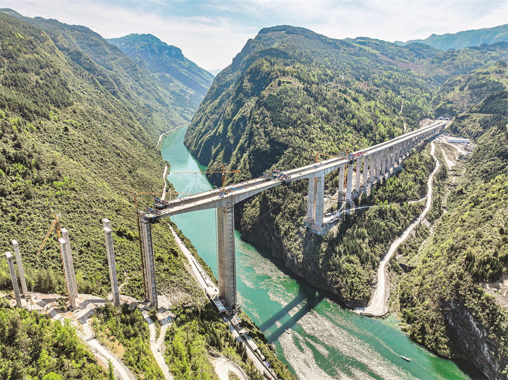 当日,由中铁建重庆投资集团参与投资、中铁十五局集团承建的渝湘复线高速公路黄草乌江特大桥连续梁左幅中跨在进行合龙作业。目前该桥完成建设进度90%,进入最后的冲刺阶段,为全线通车奠定了坚实基础。