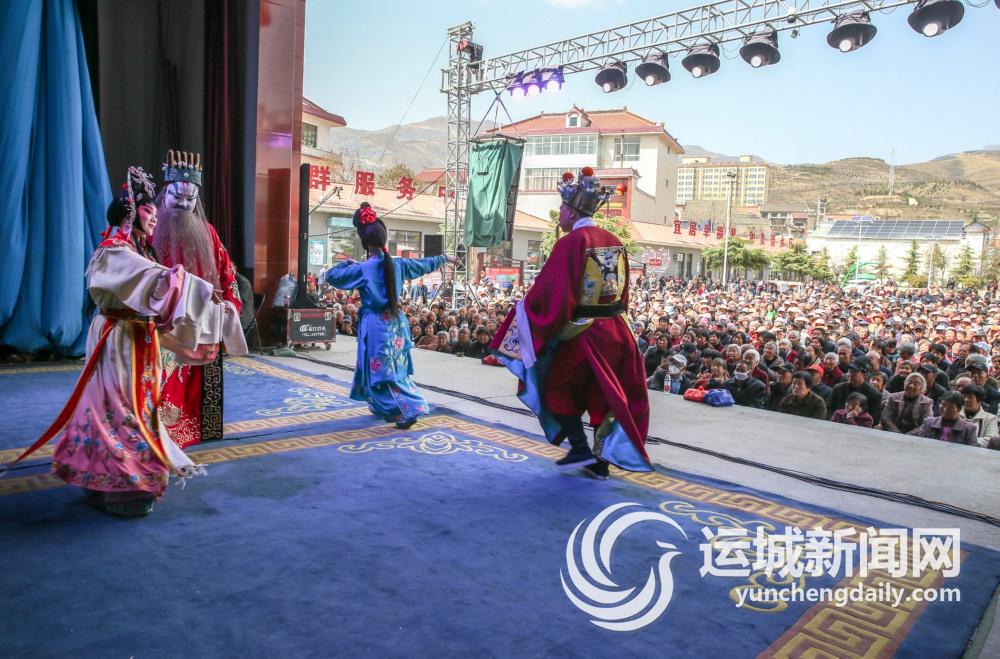3月28日,临汾蒲剧院蒲剧团演员在稷山县西社镇清水庄村表演蒲剧《美人图》。