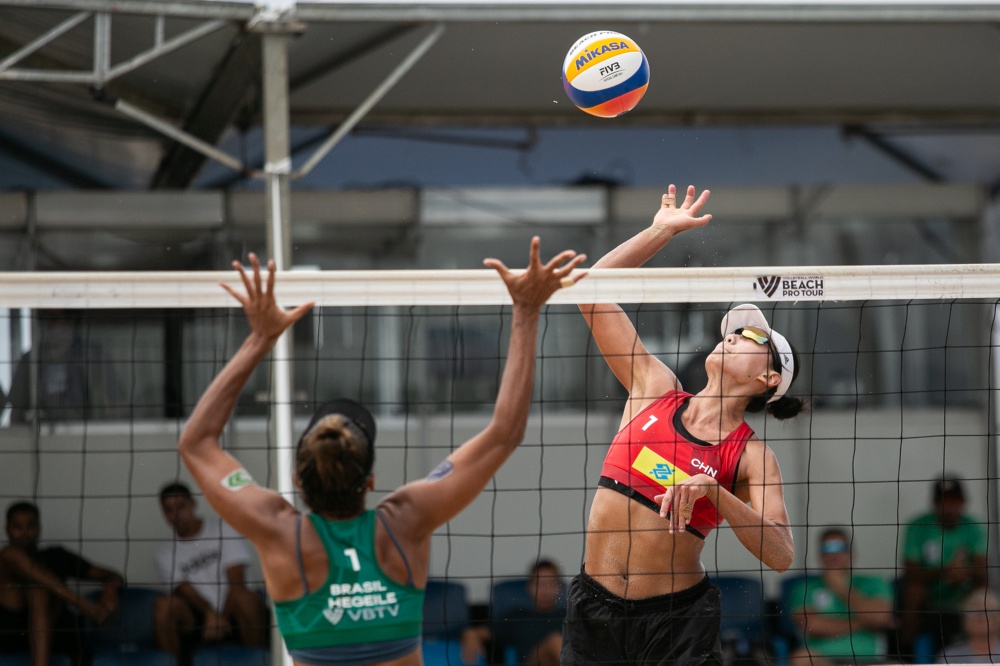 当日,在世界沙滩排球巡回赛巴西萨夸雷马站女子半决赛中,中国组合薛晨/夏欣怡2比0战胜巴西组合赫格勒/维托里亚。