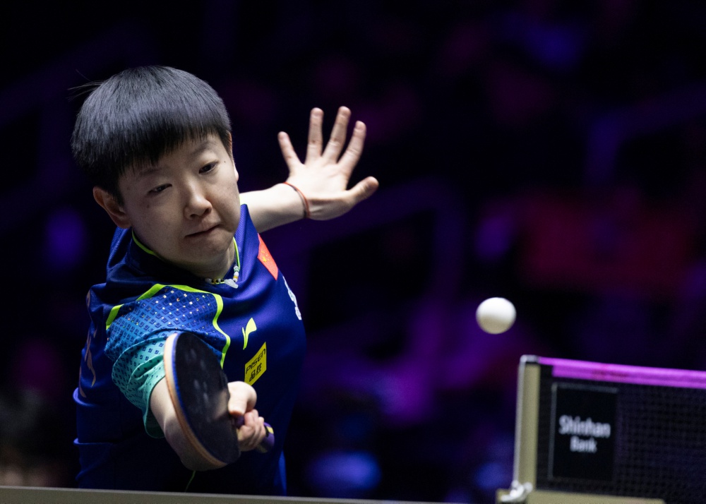 3月31日,孙颖莎在比赛中回球。