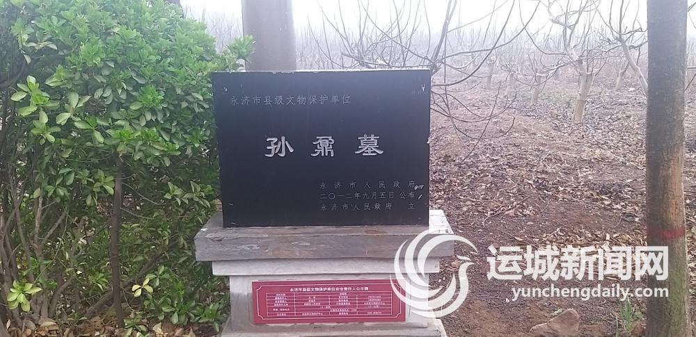 3月23日,去永济探访国家级文物保护单位——中条名寺栖岩寺塔林归来路上,发现在北郑村西的路旁有一块崭新的文物保护碑,上前看后发现,原来是永济市级文物保护碑,上书“孙鼐墓”。