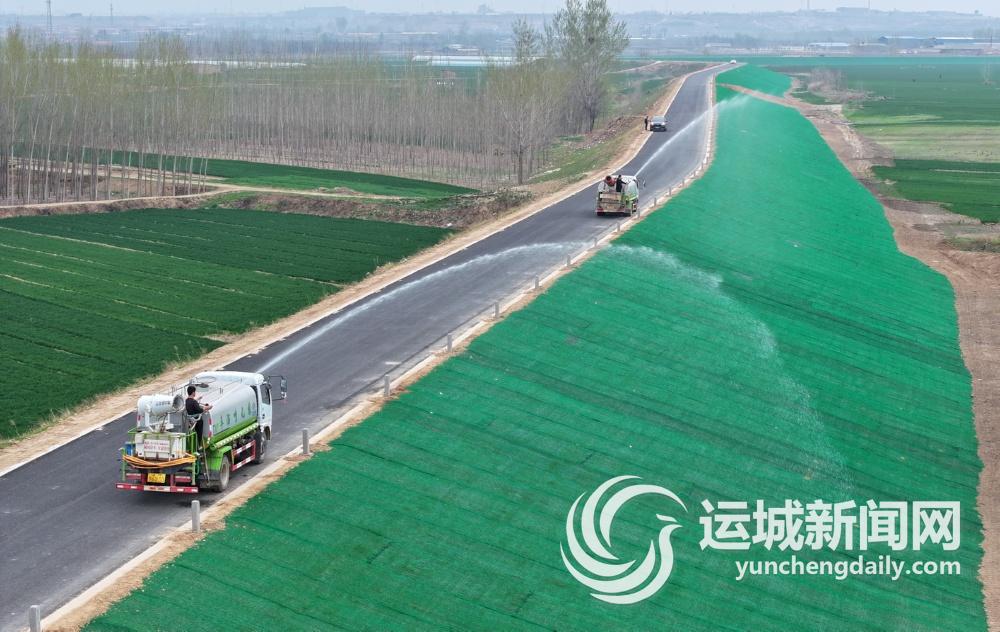 据了解,汾河流域稷山县干流段综合治理项目内外边坡防护工程总投资3400万元,全长21.5公里,防护面积约45万平方米。该工程采用三维固土网垫+椰丝毯+播草籽的技术,在实现绿化景观效应的同时,防止水土流失,进一步提升汾河的防洪能力。 特约摄影 栗卢建