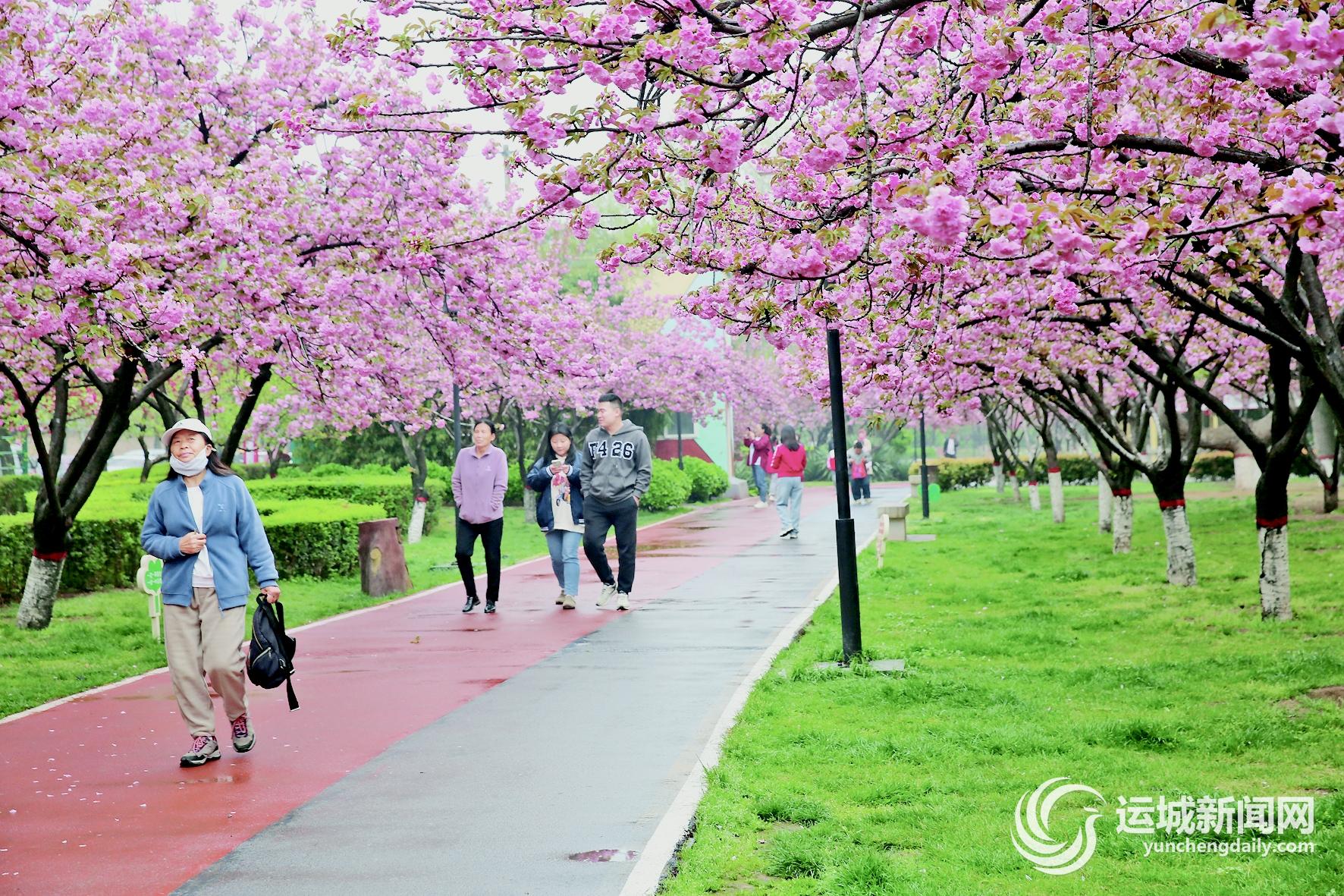 4月3日,市民在永济市樱花园漫步。每年清明节前后,永济市樱花园内各类樱花竞相绽放,吸引不少市民和游客前去踏青赏花。