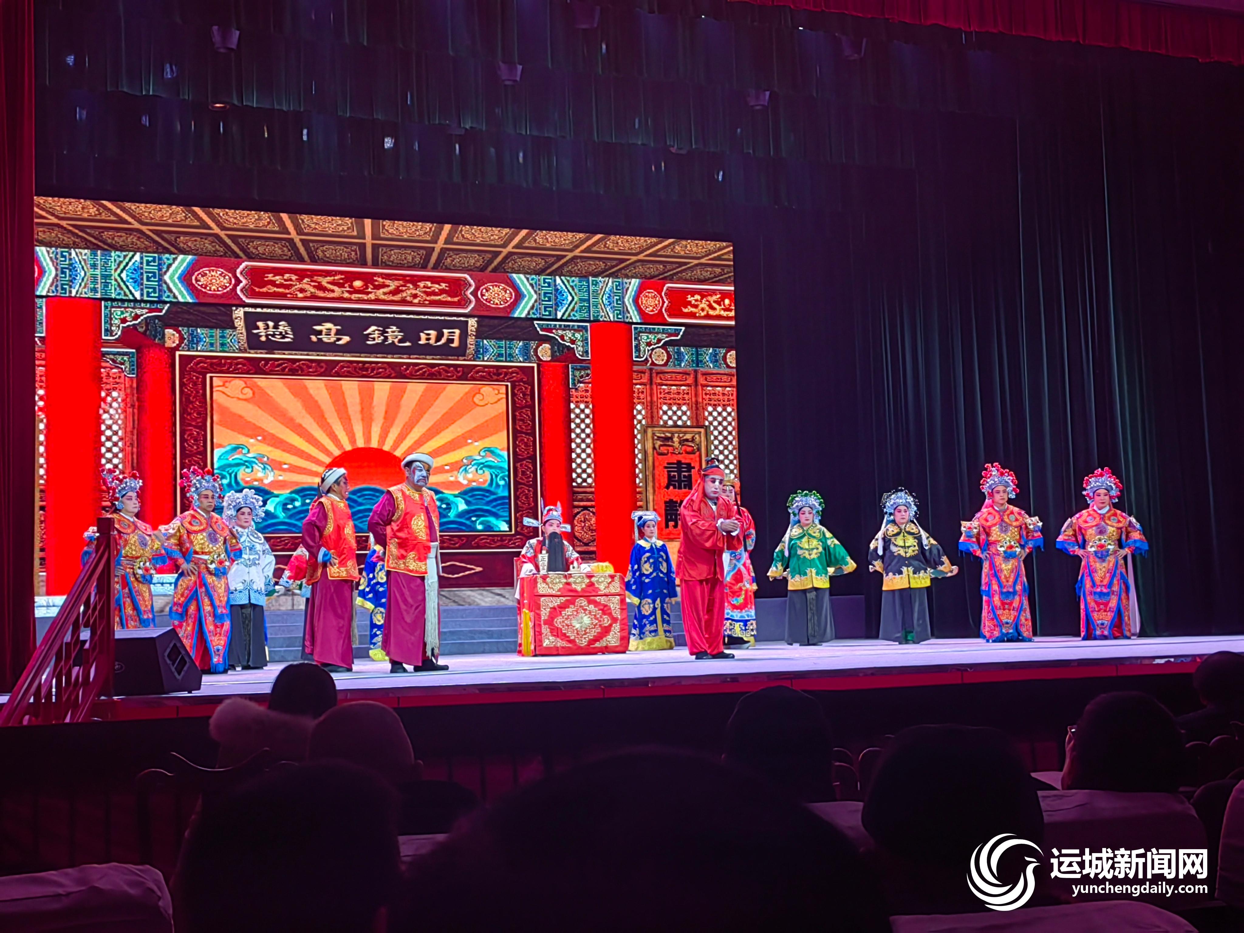 正月初十晚,垣曲曲剧团在蒲景苑剧场演出《卷席筒》时剧照。马坚兵 摄
