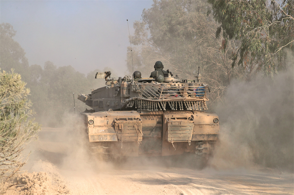 这是4月7日拍摄的加沙地带和以色列边境以色列一侧的以军。以色列媒体7日报道,以军已从加沙地带南部撤出所有地面部队,目前加沙地带只留下一个旅。新华社发