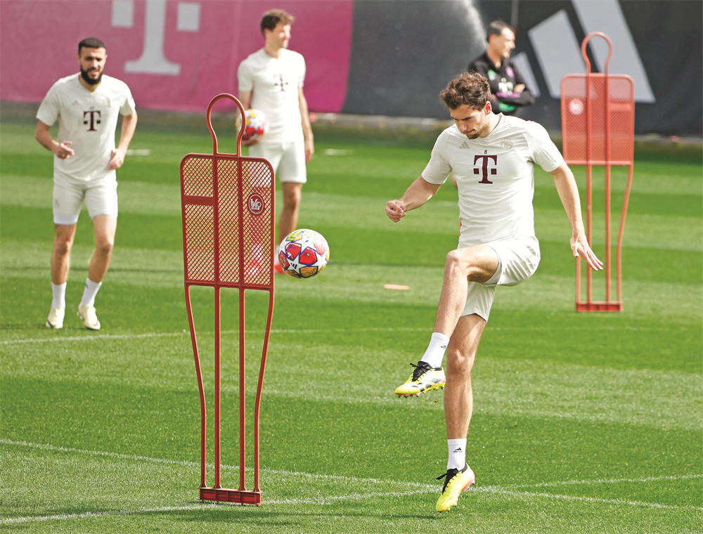 当日,德甲拜仁慕尼黑队在德国慕尼黑进行训练,备战2023~2024赛季欧洲足球冠军联赛四分之一决赛首回合对阵英超阿森纳队的比赛。 新华社发(菲利普·鲁伊兹 摄)