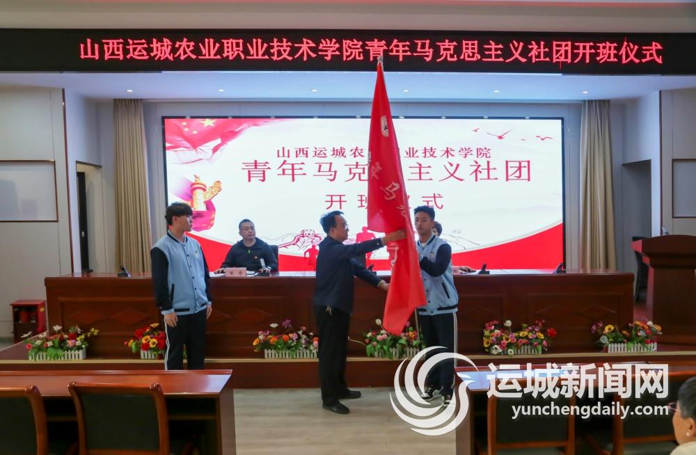 运城晚报讯(记者 杜磊)4月8日,山西运城农业职业技术学院青年马克思主义社团开班。该校党委副书记田峰为社团授旗。