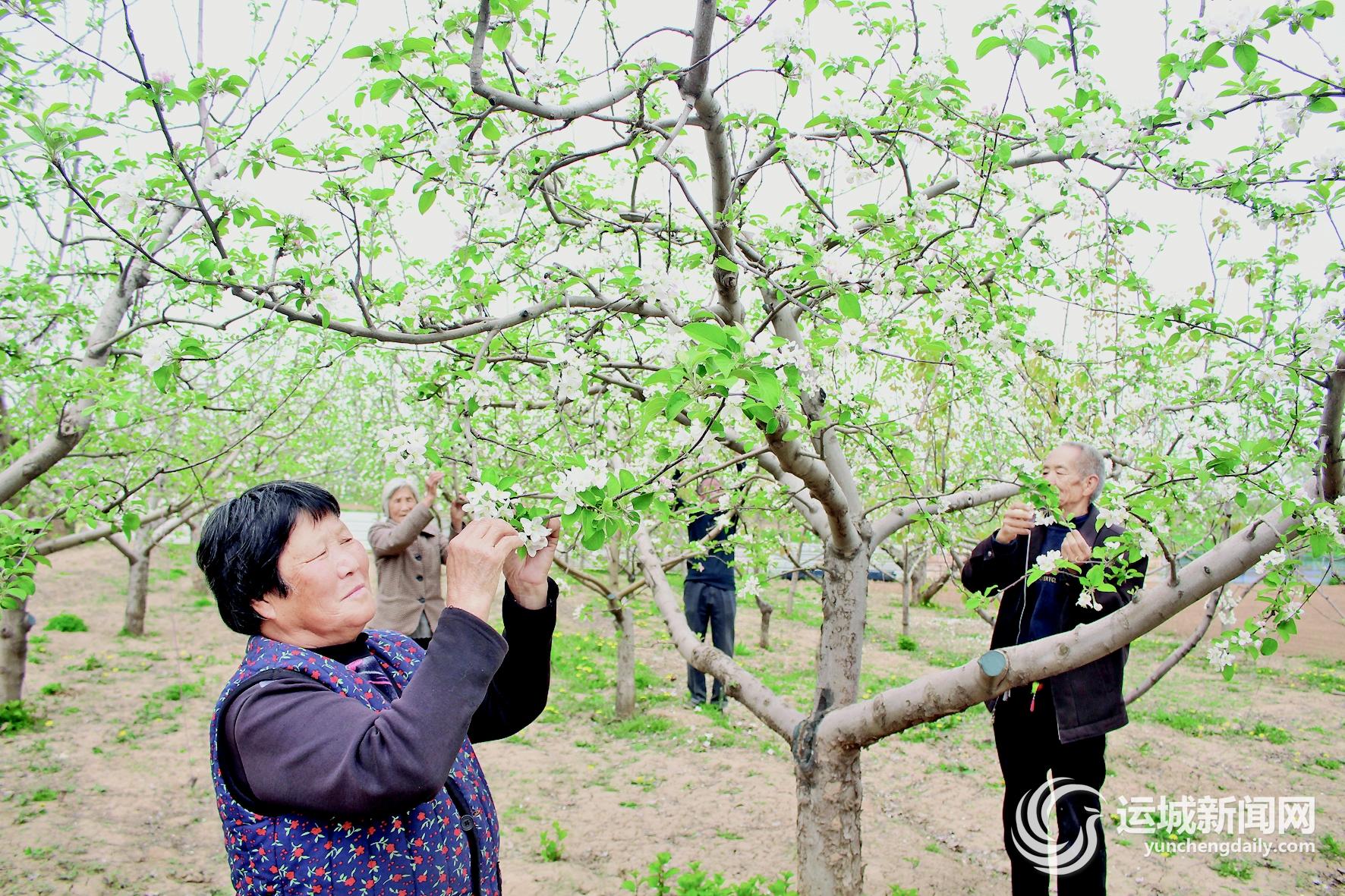 4月11日,果农在闻喜县阳隅镇笃行村果园里给苹果树疏花。 特约摄影 刘 佳 摄