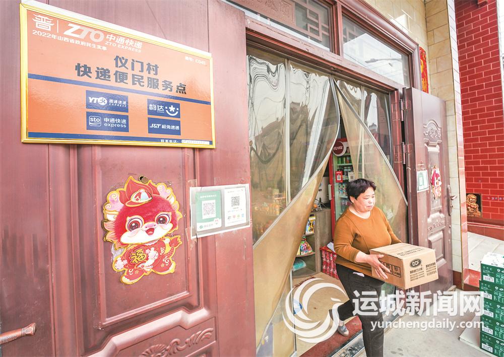 夏县仪门村快递便民服务点村民正在拿取快件。