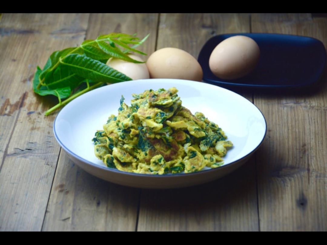 煎香椿鸡蛋 锅里放油烧热,油温三成左右。再放入调好的香椿鸡蛋液,用锅铲把中间没有凝固的鸡蛋慢慢地往外推,勤翻着一点,煎至焦黄,出锅即可。 (《运城晚报》综合)
