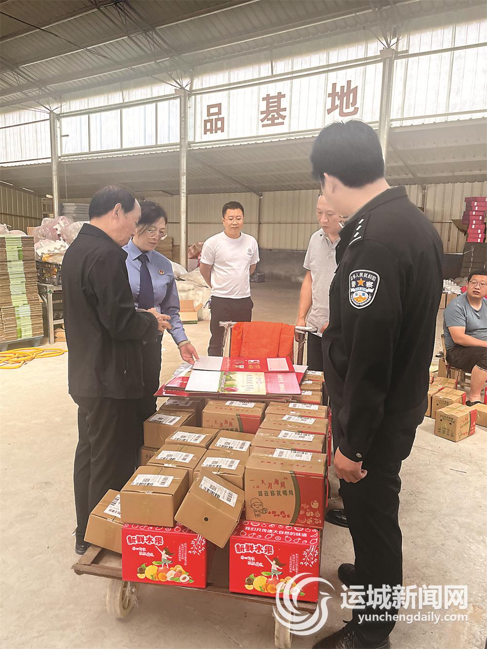 万荣县人民检察院检察官向南张乡晓辉果业合作社了解“万荣苹果”地理标志证明商标使用情况。