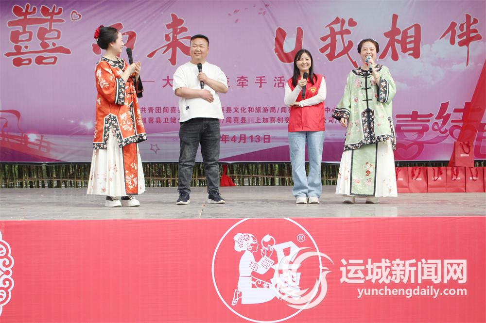 4月13日,闻喜县涑水小镇中心广场“闻囍而来 U我相伴”——大型公益牵手活动现场。