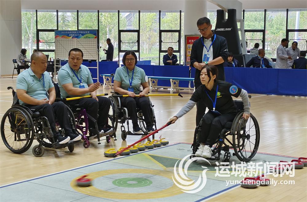 运城晚报讯(记者 郝丽莎)4月16日,2024年山西省残疾人旱地冰壶比赛在永济市体育中心训练馆开赛,来自9个地市的10支代表队、80名运动员展开角逐,在运动中展现自我风采(下图)。