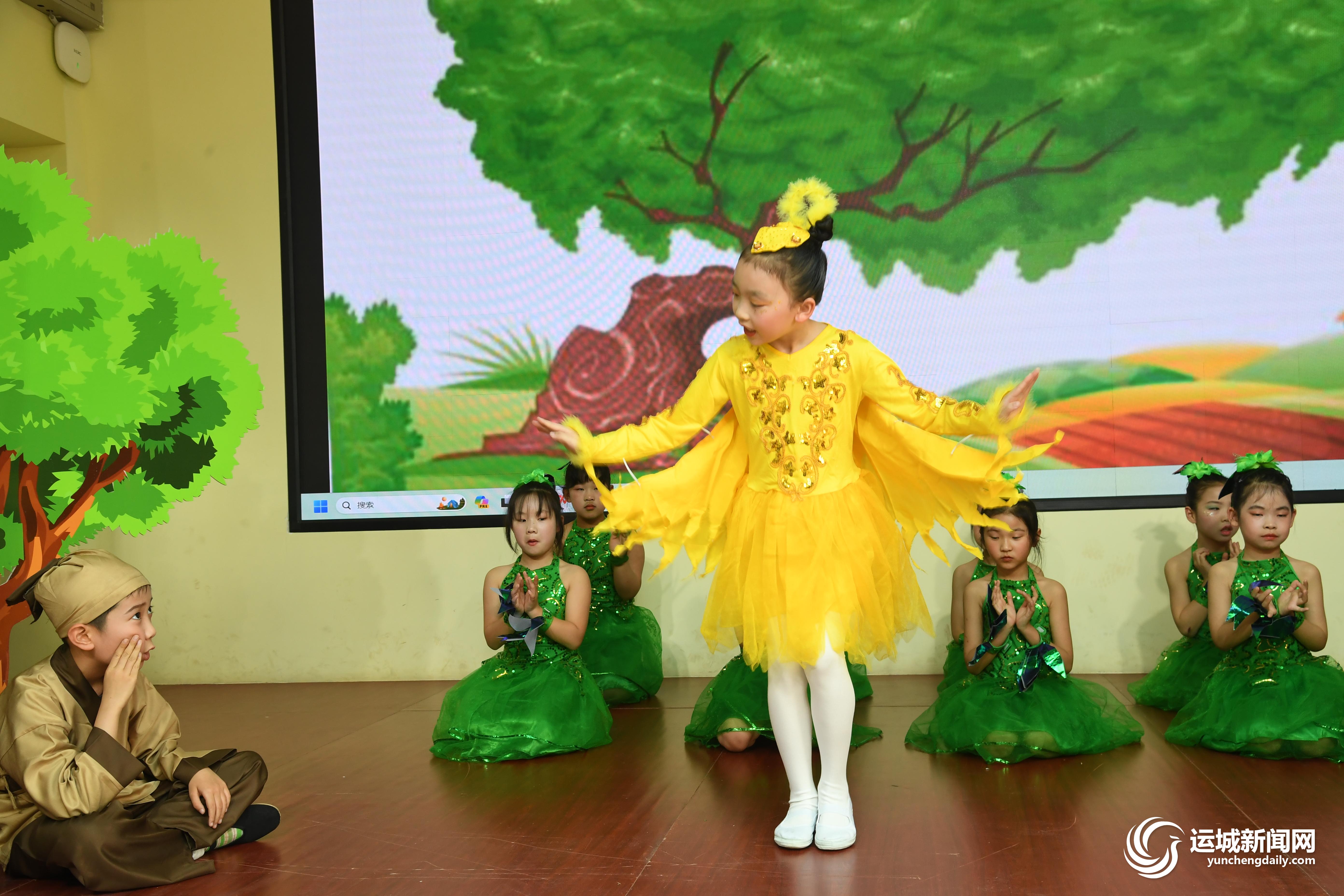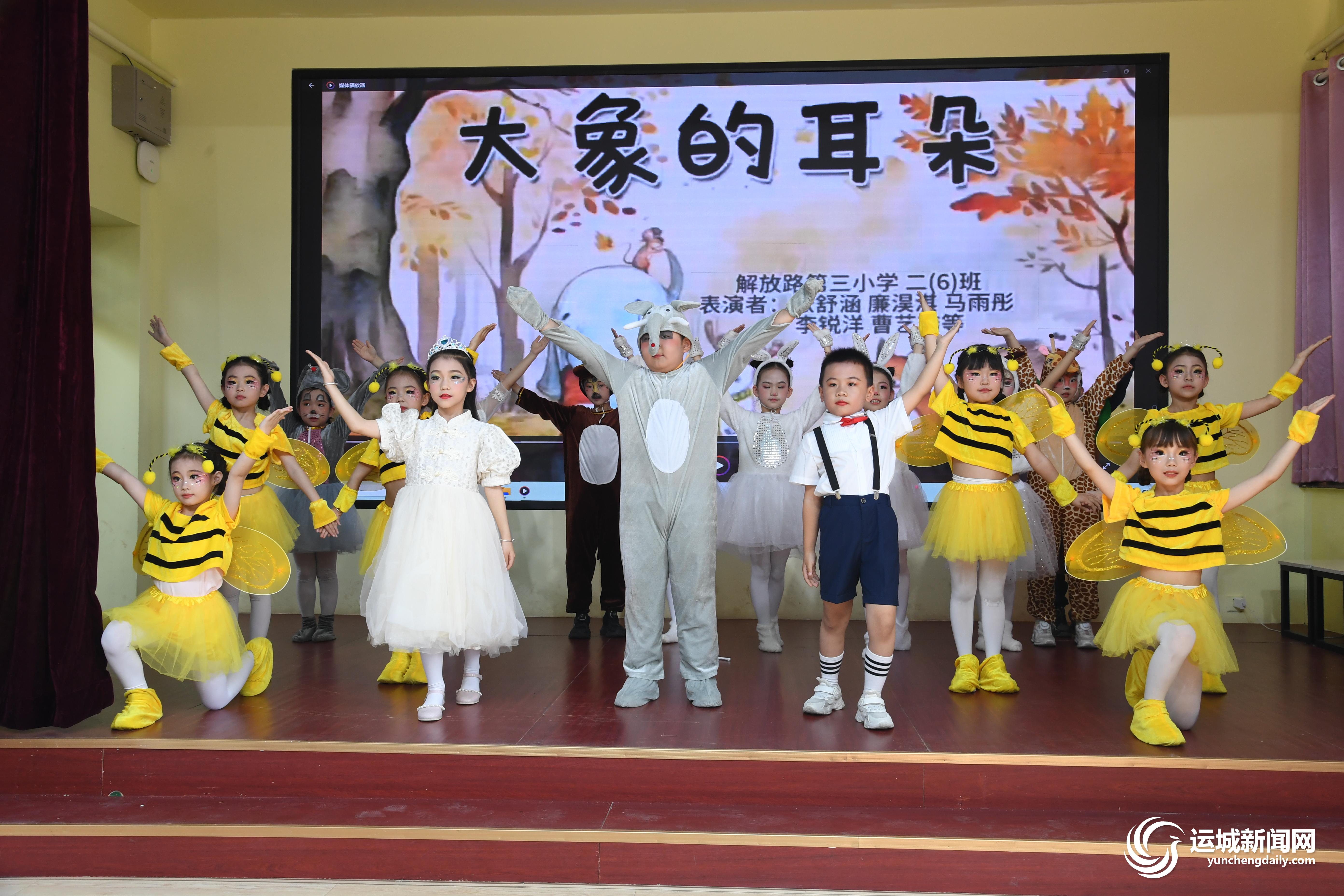 “蔬菜也有自己的奇妙小世界,平日清爽鲜脆的蔬菜,青菜、萝卜、白菜、小葱这一个个活了起来,它们要和‘藕王’展开一场大战……”在盐湖区解放路第三小学《一园青菜成了精》舞台剧表演现场,孩子们化身各式各样的蔬菜,将故事中的角色演得活灵活现。