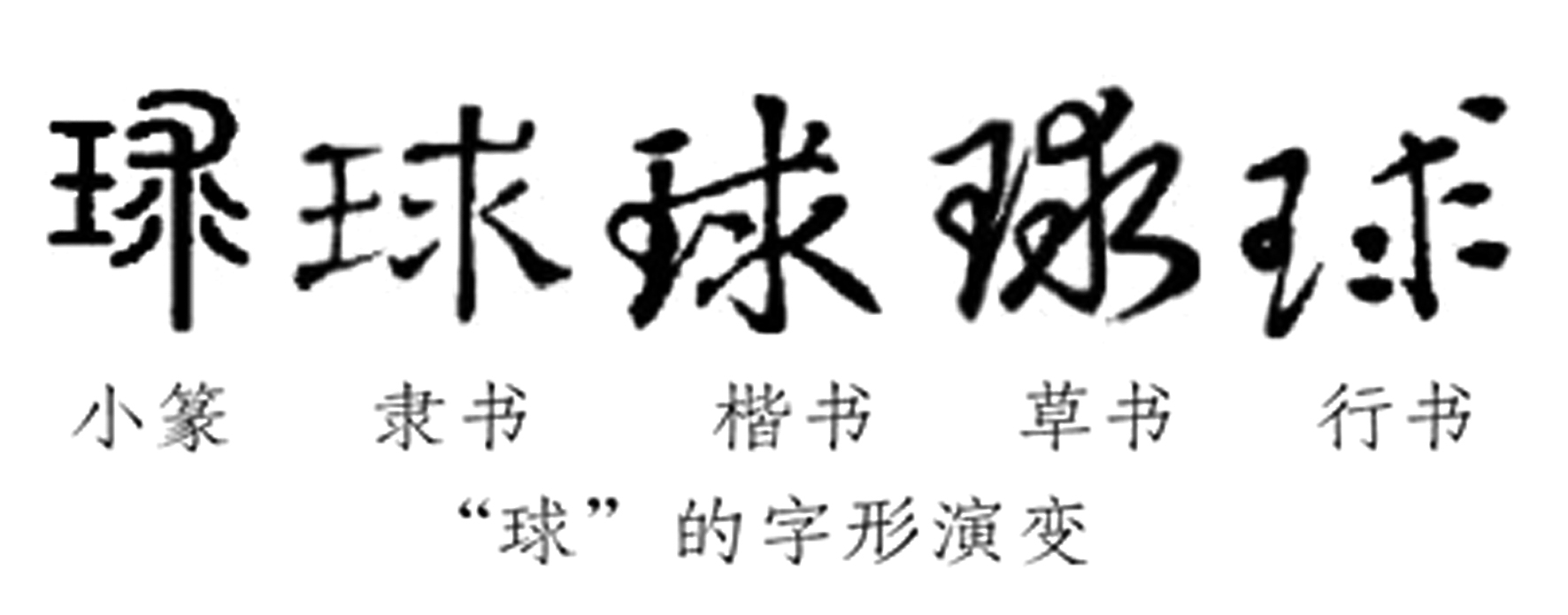 再看看“球”。小篆中的“球”由“王”和“求”两个部分组成,“求”表示读音,而作为部首的“王”大部分表示“玉”的意义,例如“琦、琳、瑾、瑜、琼、瑶”都有美玉的意思。因此“球”本来的意义是美玉。美玉的形状是非常多样的,而地球是椭圆体,那么为什么“球”会产生这种意义呢?实际上,这是“球”借用“毬”意义的结果。
