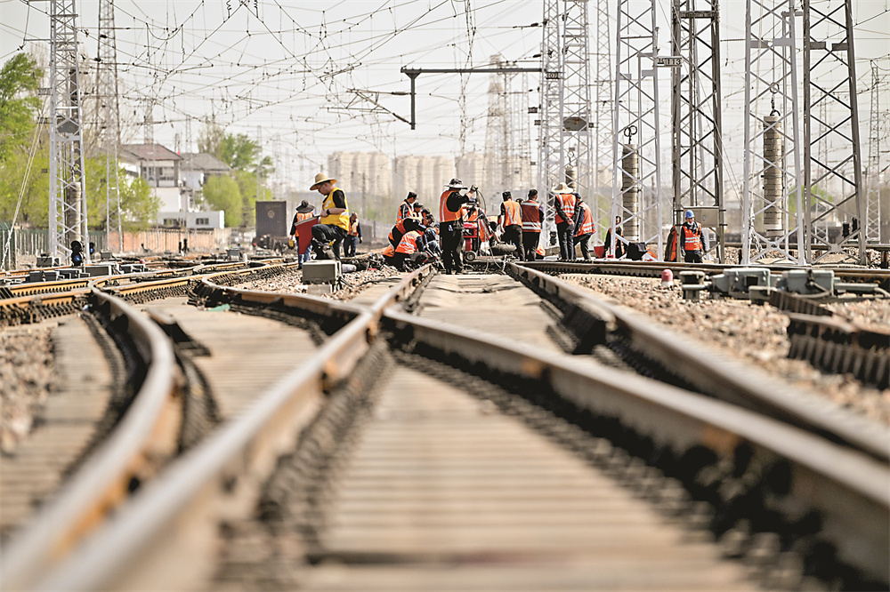 4月18日,中国铁路太原局集团有限公司大同工务段职工在进行集中修施工作业。