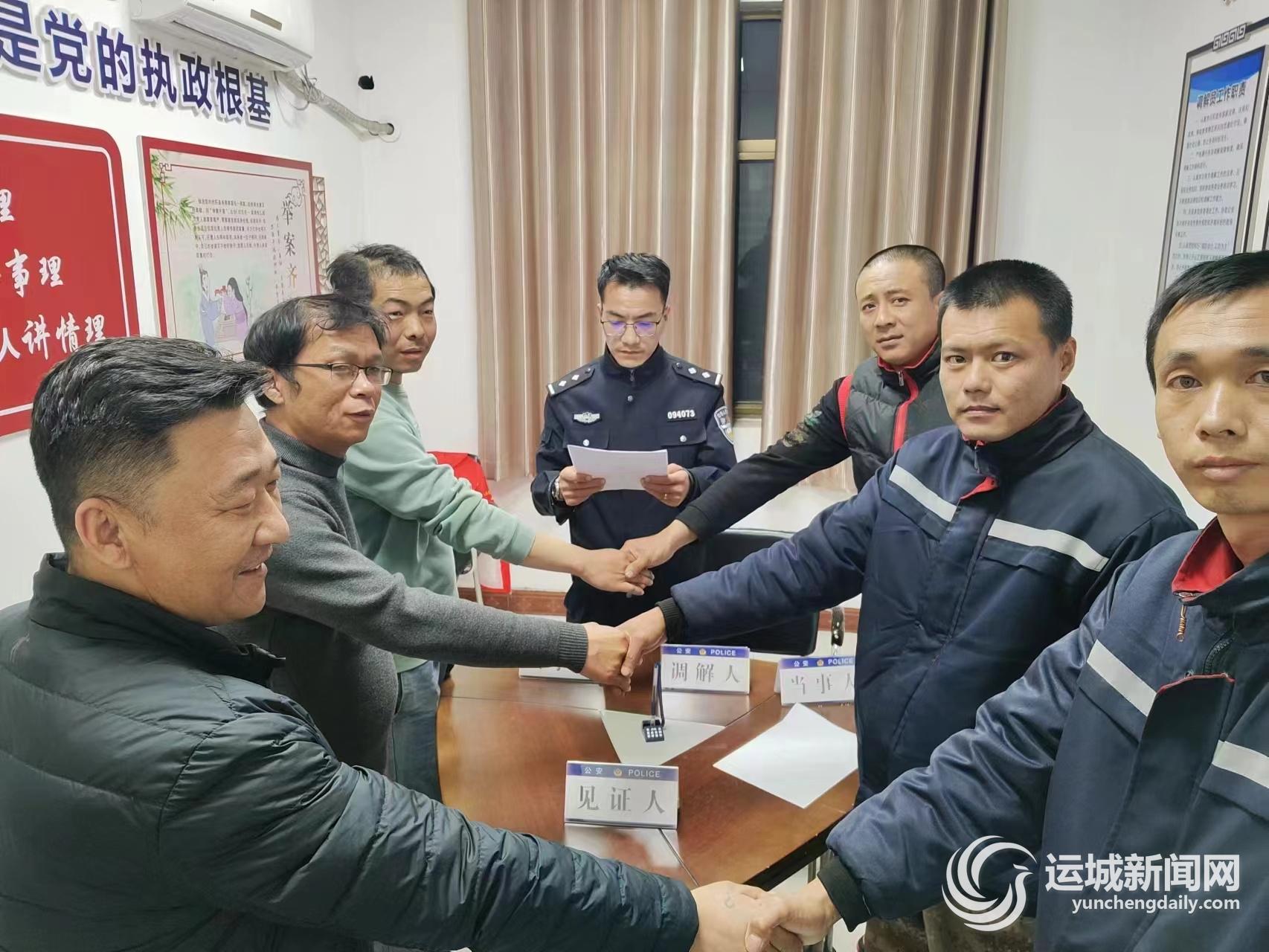 “铭福钢铁制品有限公司有人发生纠纷,请民警出面调解。”3月18日,一条求助信息发布在西社派出所“警企联保”微信群里,该派出所民警看到后立即赶赴现场。经了解,刘某来铭福钢厂卸货,由于吊车操作工操作不当,货物掉落导致刘某大货车右侧一半被损坏,轮胎被车厢压住。民警对双方当事人进行劝导。双方最终握手言和。