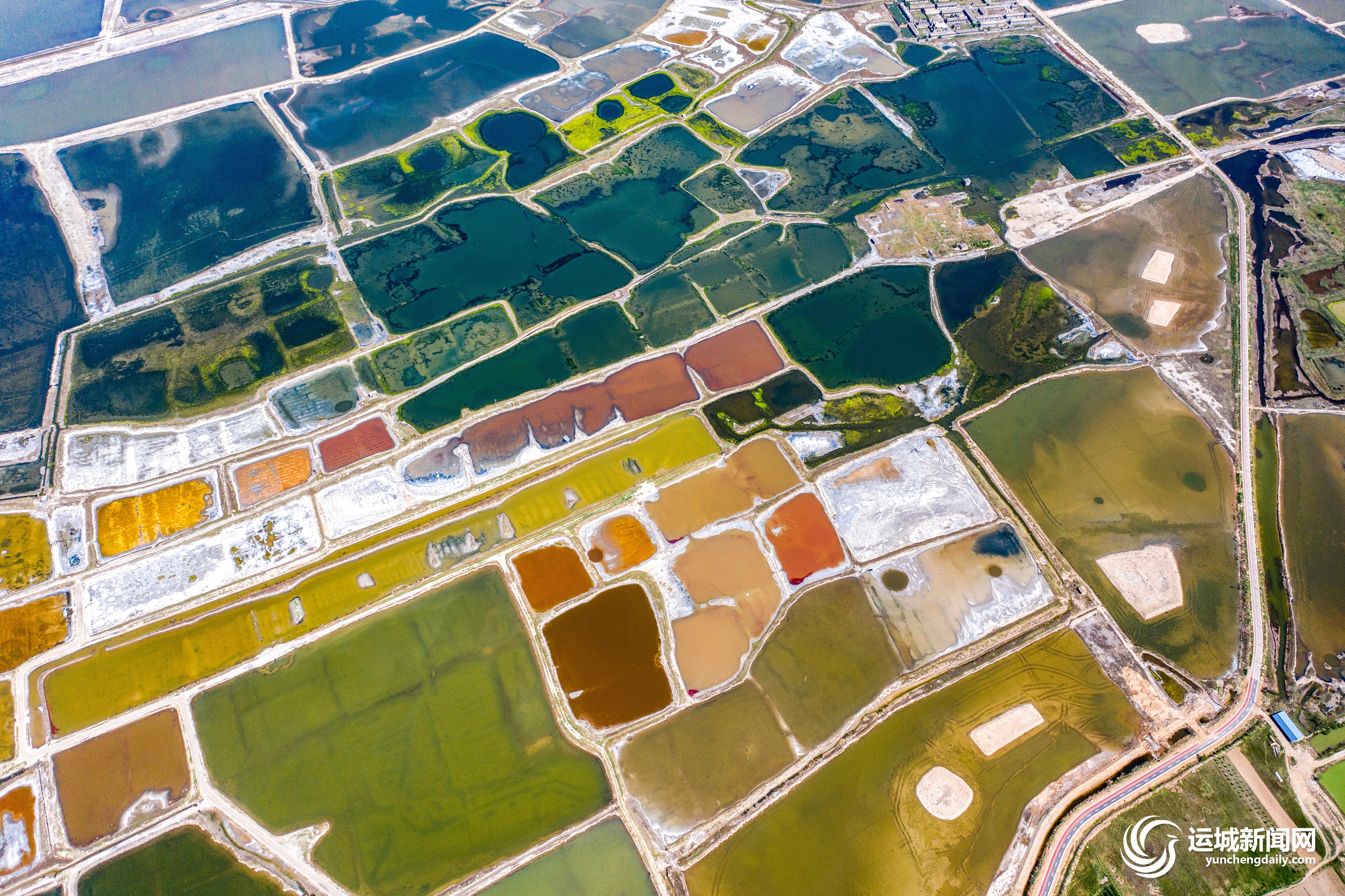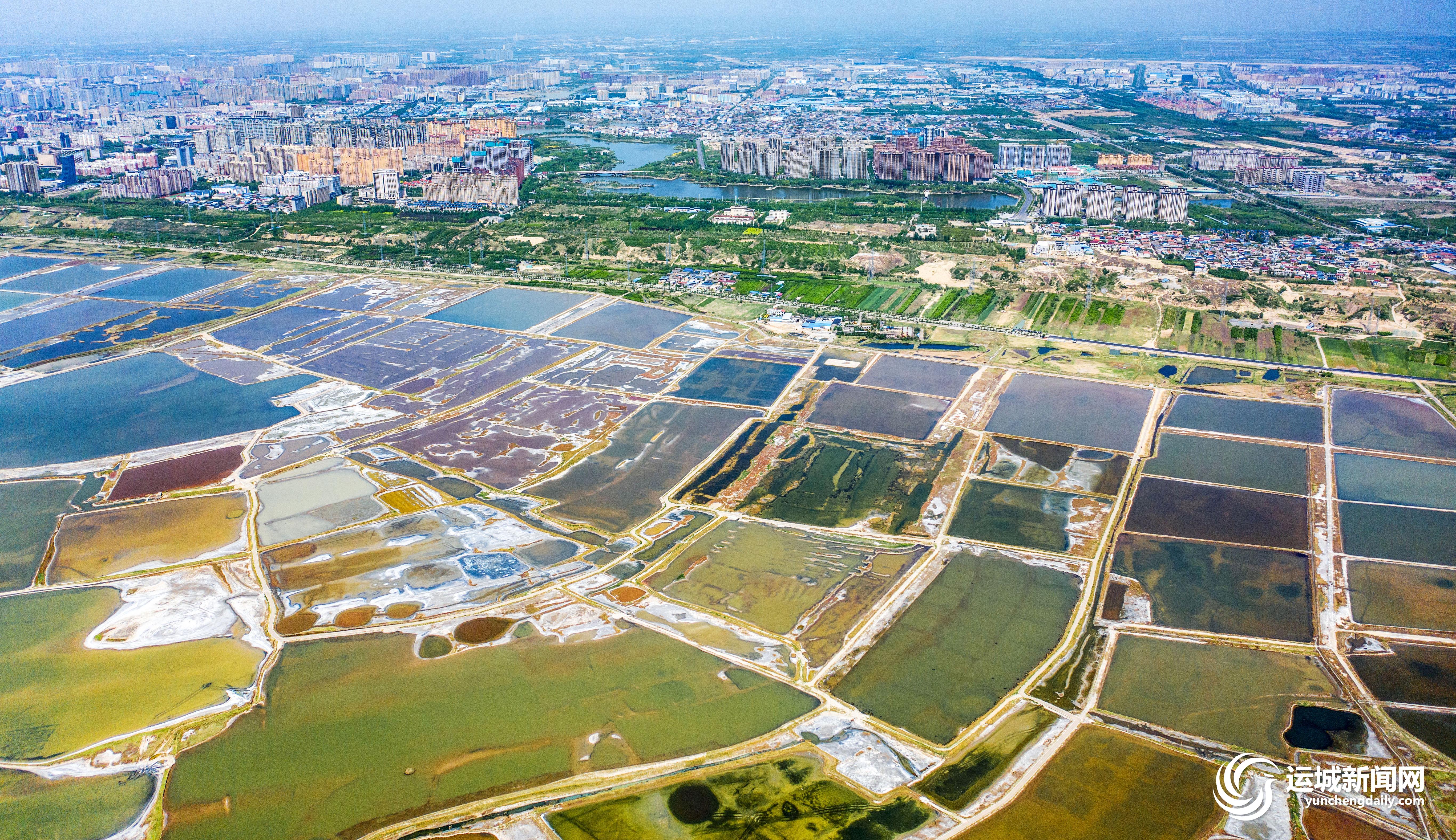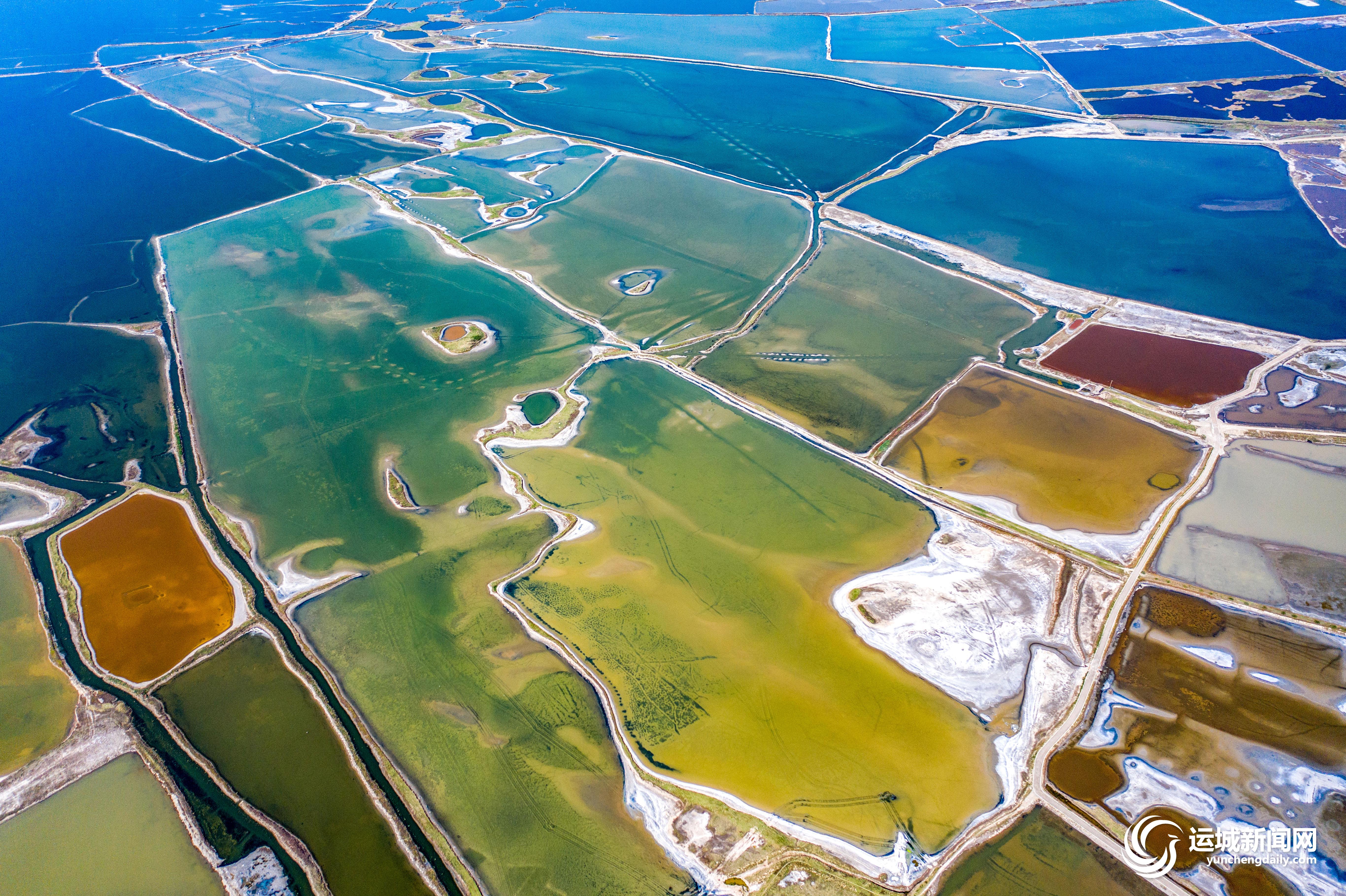 近日,随着气温的升高,运城盐湖呈现出色彩斑斓的别样美景,空中俯瞰,宛如大地的调色板。近年来,我市不断加大盐湖生态环境的保护力度,盐湖生态环境持续向好。