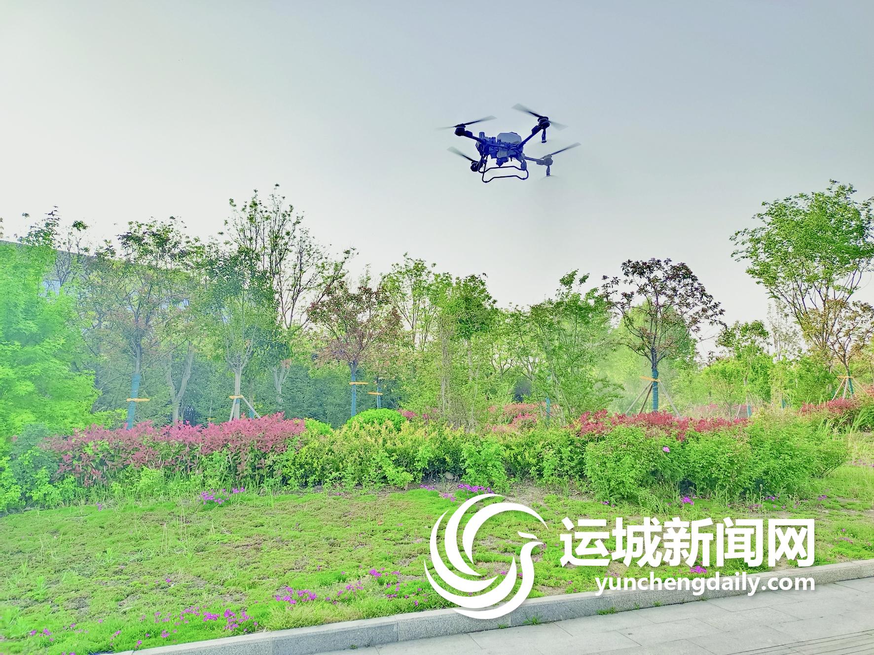 近日,记者在市区机场大道和安邑西路交会处看到,几名工作人员操作无人机对绿地内的苗木喷施药物(下图)。“今天主要对机场大道、铺安街等地的绿地开展作业,针对当前容易发生的蚜虫、国槐尺蠖等病虫害,我们采取飞防和水车喷药相结合的方式进行治理。飞防也就是无人机喷药,这样可以把药剂喷洒到植物顶端,具有施药范围广、精准度高、用药量少等优势。同时搭配水车喷药,治理效果更好。”该中心综合业务部史海鹏介绍。