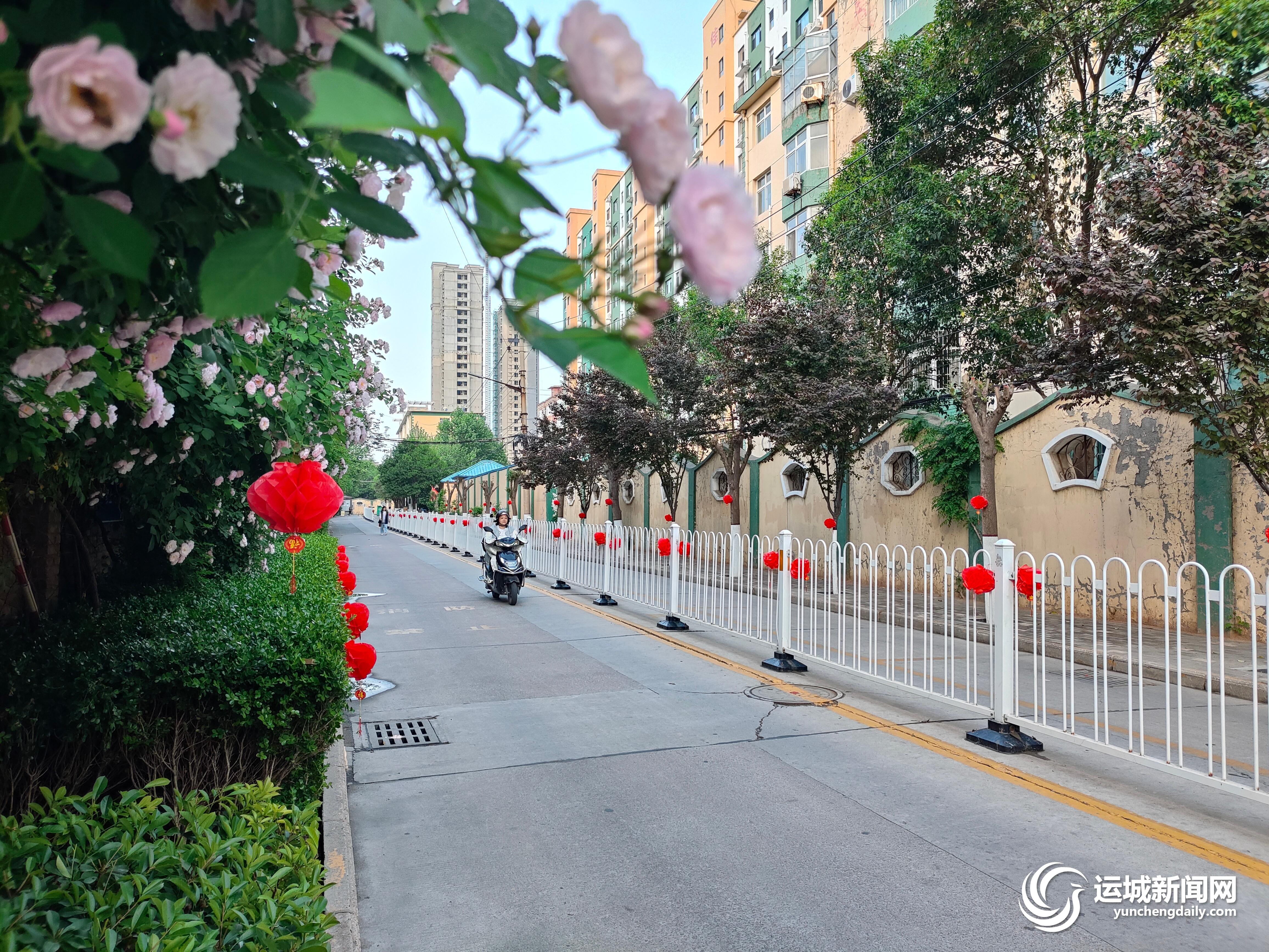 该巷道是附近宏运佳园小区、恒运家属院居民进出的必经之路,它呈东西走向,长400米、宽7米,中间有一排白色的隔离栏。巷道南侧是人行道,北侧是一排绿化带,淡粉色的蔷薇花绽放满墙,浓郁的花香扑鼻,不时有过路的居民在蔷薇花下拍照。