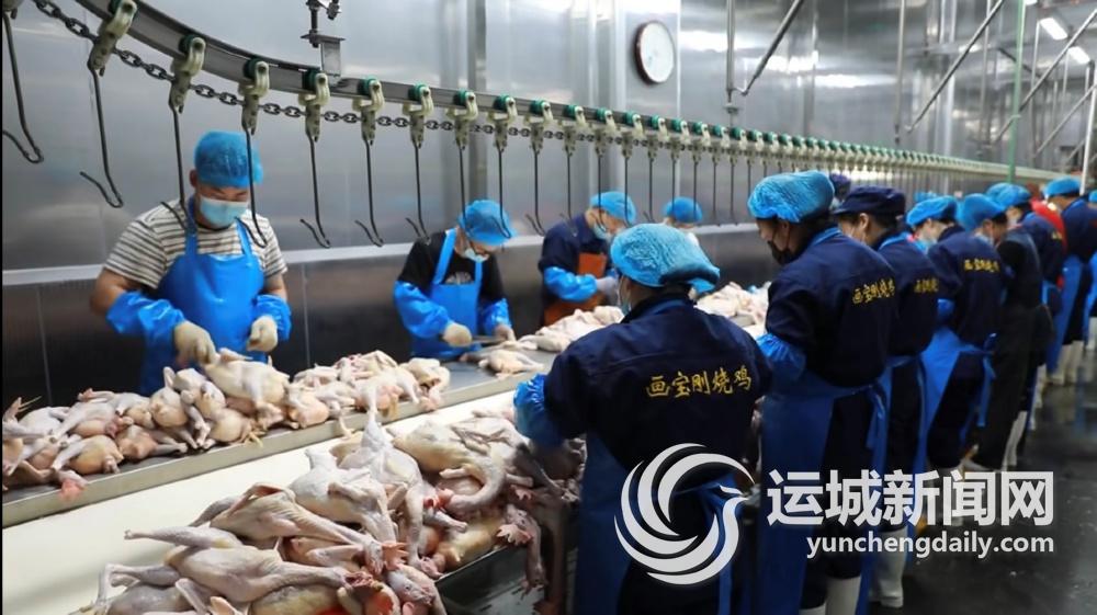 近日,总投资1.35亿元的山西临猗画宝刚年产1200万只烧鸡深加工项目进入试生产阶段,工人在生产车间紧张忙碌。