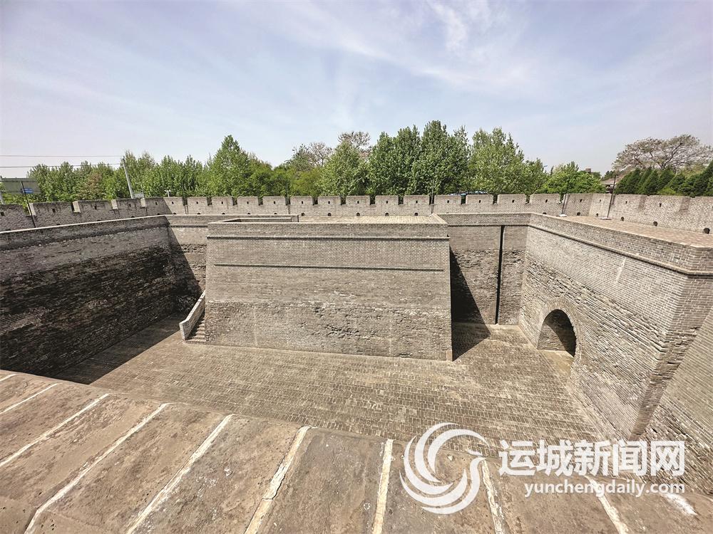 除了鼓楼,蒲州故城现还存有四门瓮城,四城门因作用不同,大小和形制各不相同。东门为“迎熙”门,西门为“蒲津”门,南门为“首阳”门,北门为“振威”门。原城门上应有城楼,城门外还设有两道以上的城门,形成瓮城。瓮城除了利于城内排水,其军事作用更大,可加强防御能力。和平时,瓮城用于军队驻守和看守城门;战时,敌军侵入,首入瓮城,分散兵力,防守者可从四面环射、夹击。
