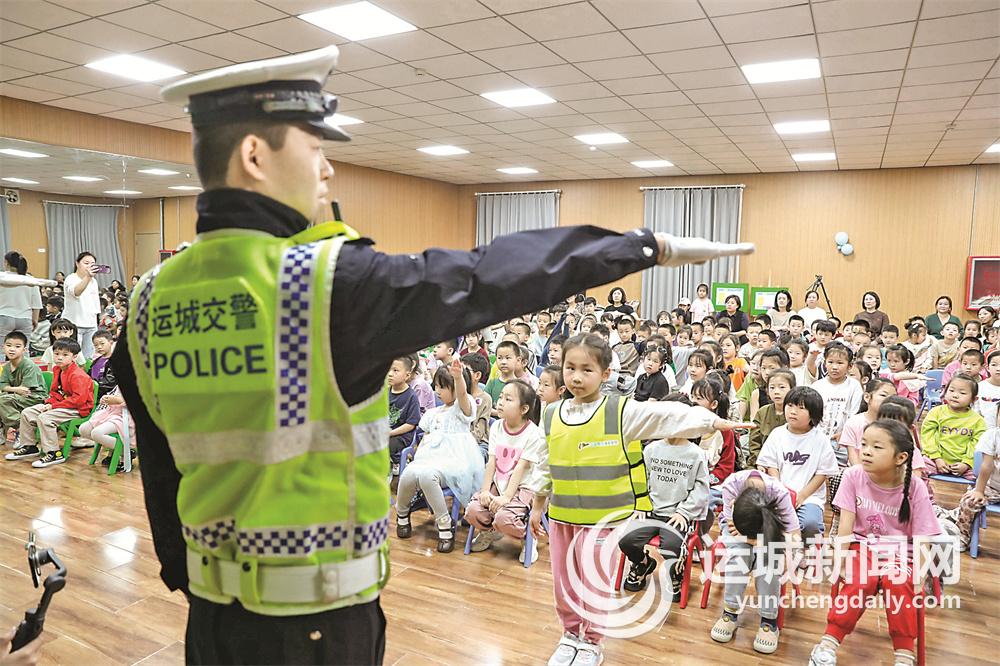 运城晚报讯(记者 张蕊彤)4月18日,市公安局交警支队宣传科和直属大队民辅警,走进辖区运城经济技术开发区幼儿园,开展“我是小小交通安全员”主题宣传活动。