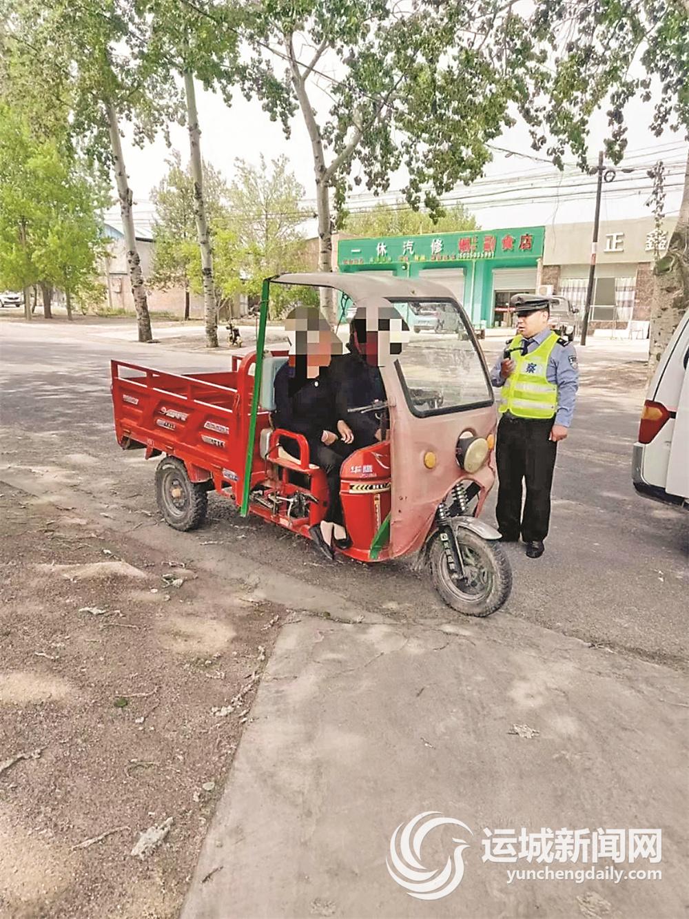 连日来,我市交警部门持续开展三轮车交通违法专项整治行动,在辖区主要路段、农村等周边道路,采取不间断巡逻管控等方式,严查三轮车违法载人等违法行为。