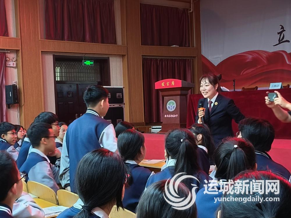 近日,垣曲县人民检察院开展系列送法进校园活动,将法治的种子播入校园。在新城初中,该院“垣”于爱未成年人检察工作室干警石雅净为学生作“远离违法犯罪 走好青春每一步”主题讲座。图为石雅净与学生互动。(资料图)