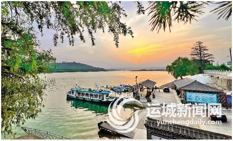 ▲4月21日,平陆县茅津渡口风光旖旎,晚霞红似火,水天共一色,令人流连忘返。