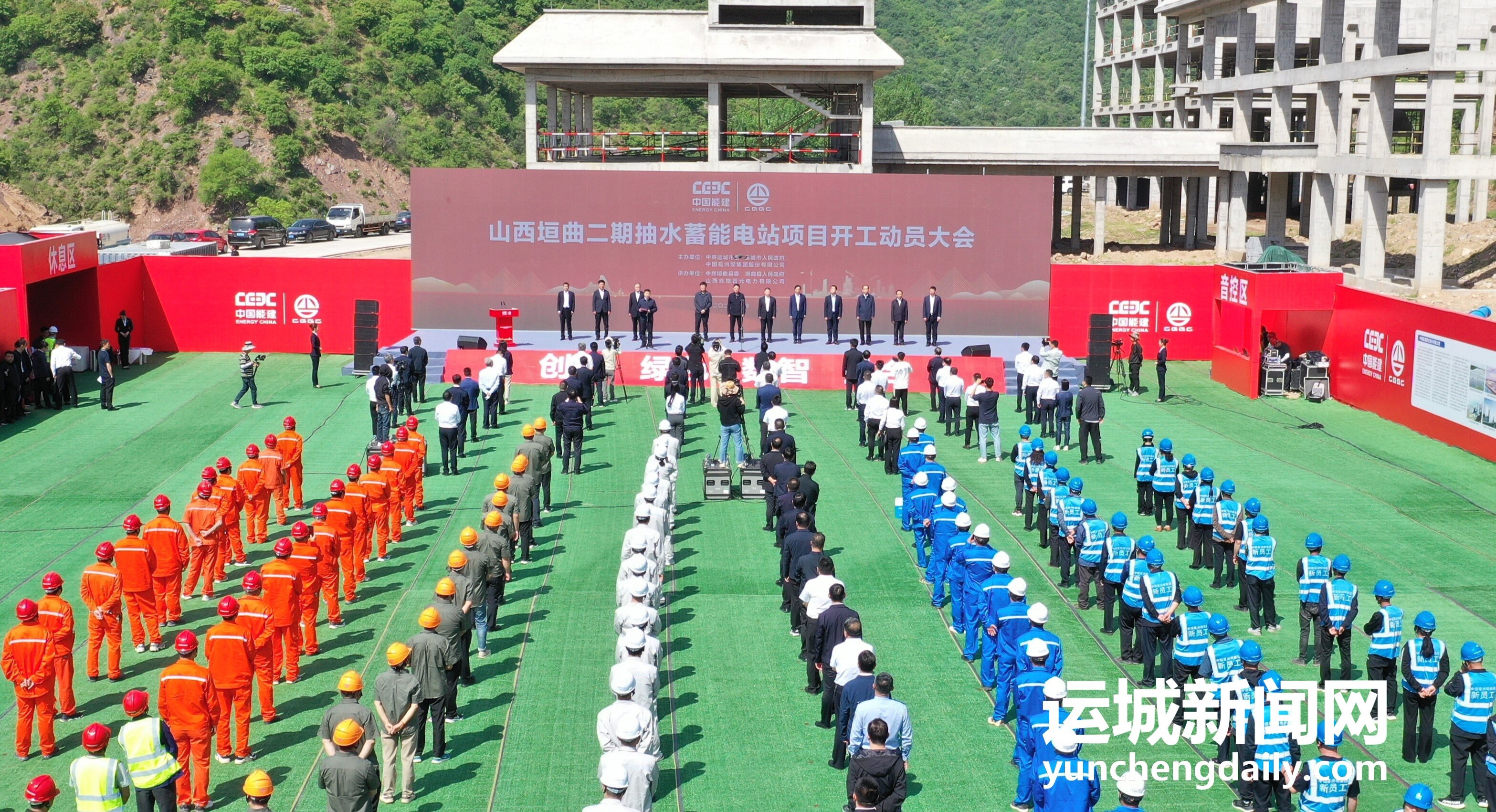开工动员大会上,储祥好宣布开工。中国葛洲坝集团股份有限公司党委书记、董事长谭华致词。山西垣曲二期抽水蓄能电站项目是贯彻落实习近平总书记提出的“四个革命、一个合作”能源安全新战略的具体实践,是深入推进山西能源革命综合改革试点、运城加快能源绿色低碳转型的重要举措。项目启动以来,市县两级党委、政府全方位做好要素保障,协调解决各类问题,各参建单位科学谋划、精心组织,目前已完成前期关键性工作,进入全面开工建设阶段。参建单位表示,将充分发挥央企项目投资和技术支撑优势,高标准、高质量、高效率推动项目建设,着力打造新能源领域精品工程、标杆工程,为运城高质量发展贡献央企力量。