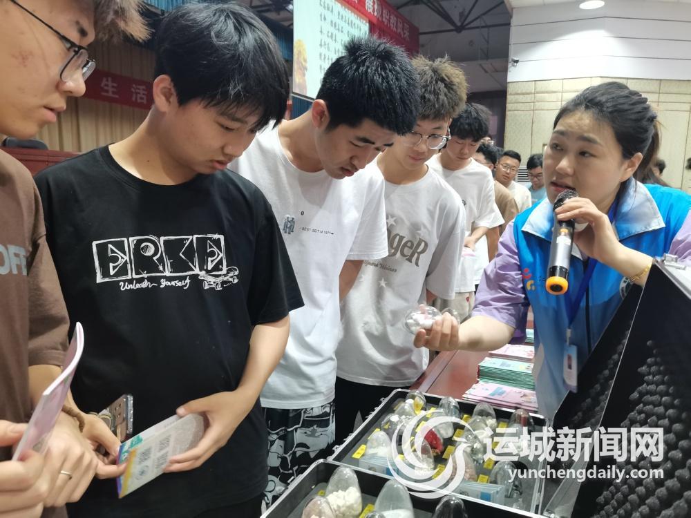 运城晚报讯(记者 杜磊 见习记者 陈怡霏)4月28日下午,盐湖区河东西街社区联合仁爱禁毒社工、东城派出所民警,在运城农业职业技术学院开展了禁毒宣传讲座,向百余名大学生普及了毒品的相关知识,展示了不同的毒品模型,告诫大家珍爱生命、远离毒品。