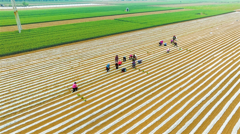 暮春时节,贾庄村村民抢抓农时,加紧春耕生产,田间呈现一派热火朝天的农忙图景。王稳锁 摄
