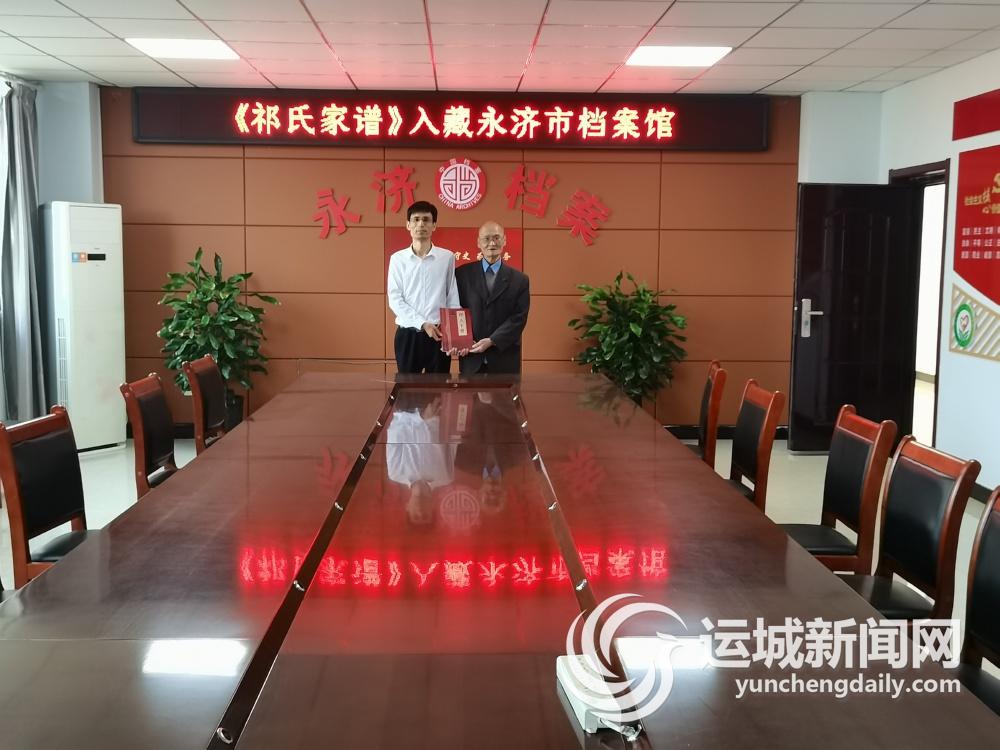 运城晚报讯 4月27日,今年83岁的永济文化学者祁世坤将他主编的《祁氏家谱》捐赠给永济市档案馆,永济市档案馆馆长史雪峰对此表示感谢。