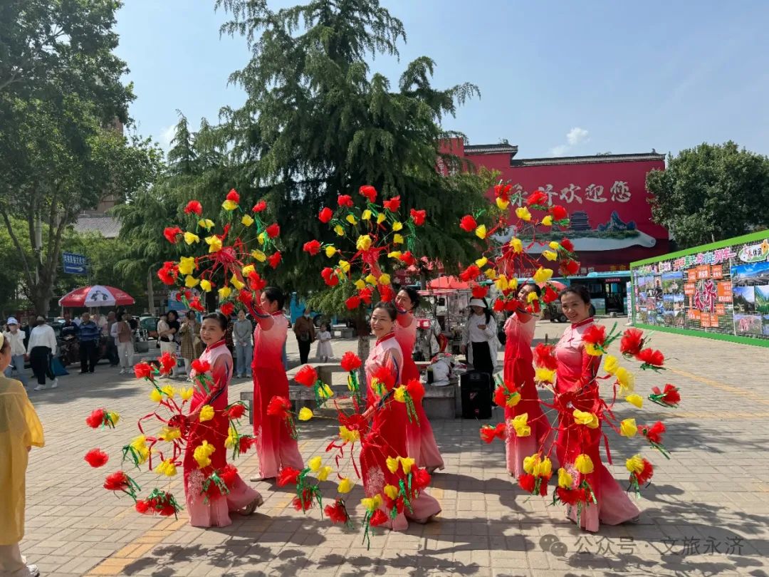 永济市文化馆为了五一假期的接站活动,提前安排,精心编排了独具永济本土特色的舞蹈永济花伞《河东美呔呔》,游客一下车就感受到蒲坂儿女的热情,精品舞蹈《上春山》体现了永济景区的特色,让游客了解永济,爱上永济。舞蹈《时代感》更是把接站活动推向了高潮,现场掌声雷动,游客热情欢呼。