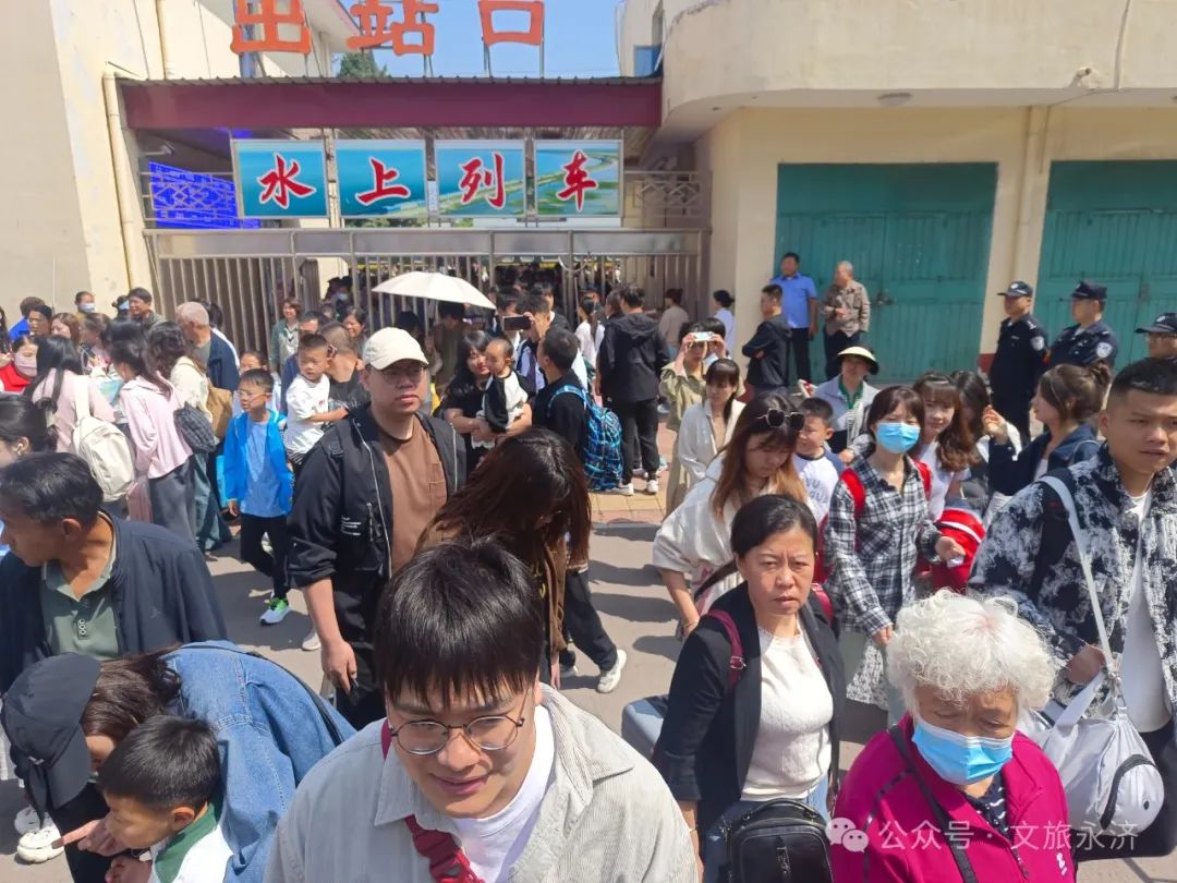 5月1日水上列车,下车游客约1700人,游客为65%的大学生,20%亲子游、2个研学团队约100人。接站活动有文化活动,图书馆永济元素剪纸和版画体验,旅游服务咨询、文明劝导、发放旅游宣传册等活动。