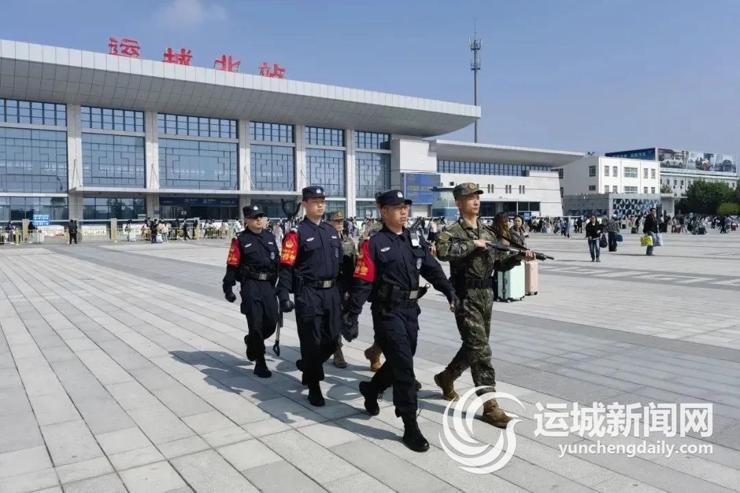 盐湖公安巡特警、武警联动武装巡逻,加强运城北站安保。