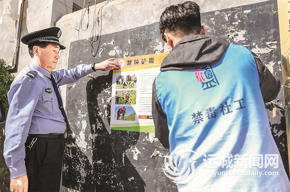 工作中,盐湖区禁毒办、盐湖公安分局禁毒大队、三路里派出所民辅警联合各乡镇禁毒专干、禁毒社工,结合毒品原植物生长周期特点,深入辖区村民家中、田间地头,开展全方位、地毯式踏查禁种铲毒行动。