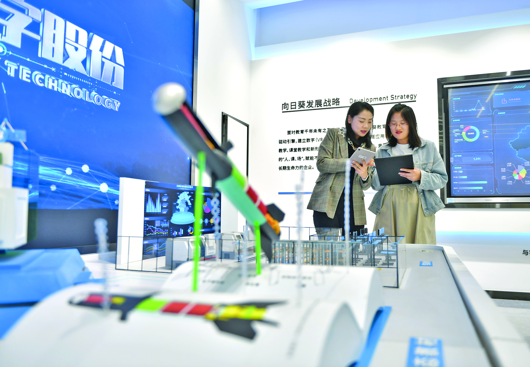 5月7日,在辽宁向日葵数字技术股份有限公司,工作人员进行新形态教材三维立体演示操作。