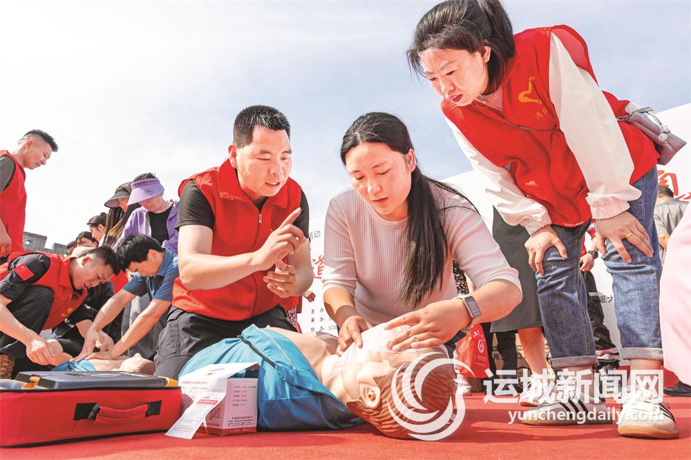 运城晚报讯(记者 陶登肖)“每做30次心脏按压需要搭配两组人工呼吸。”“双手握拳,拳心向内向上挤压窒息者的腹部。”……5月8日,在池神庙中禁门广场,工作人员和志愿者向过往市民普及心肺复苏、海姆立克急救法等知识。