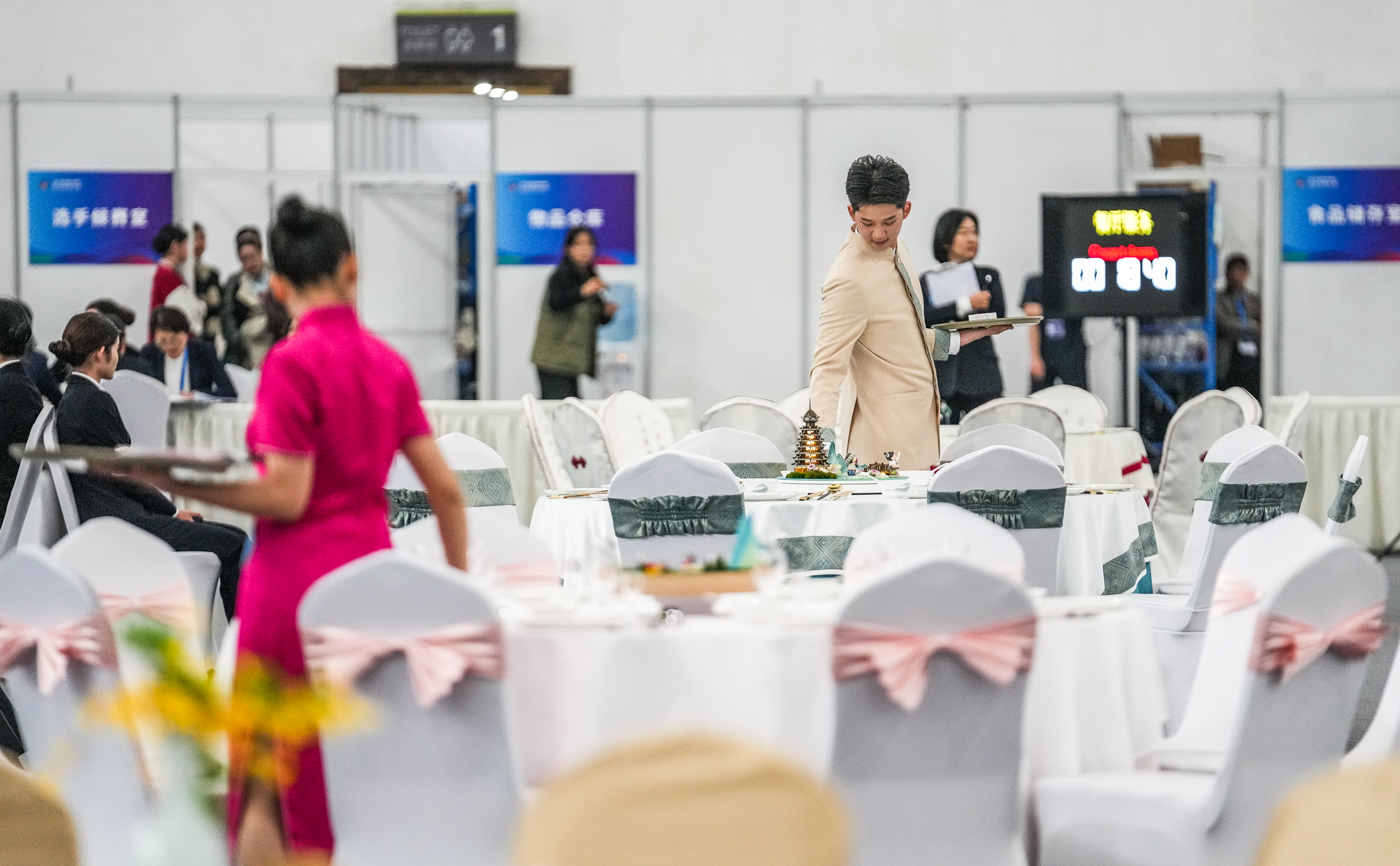 这是5月8日拍摄的第二届乡村振兴职业技能大赛餐厅服务项目比赛现场。当日,本届大赛在贵州省贵阳市开幕。