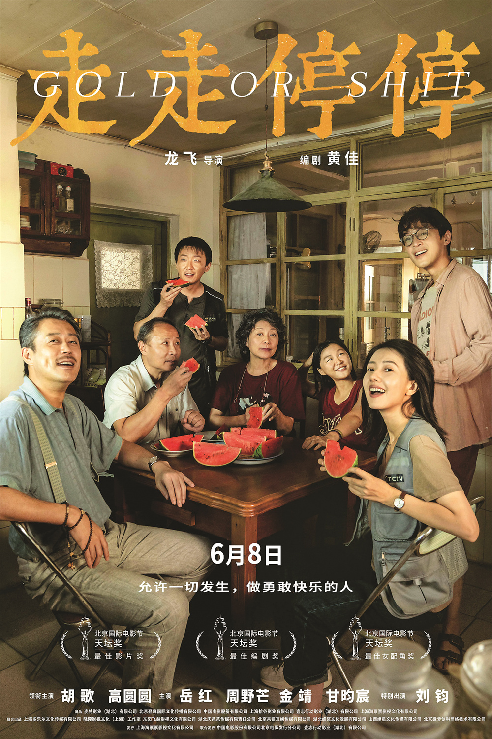 胡歌与高圆圆首次大银幕合作的电影《走走停停》在第十四届北京国际电影节“天坛奖”颁奖典礼上斩获最佳影片、最佳编剧、最佳女配角三项大奖,同时宣布该片于6月8日端午假期全国公映。