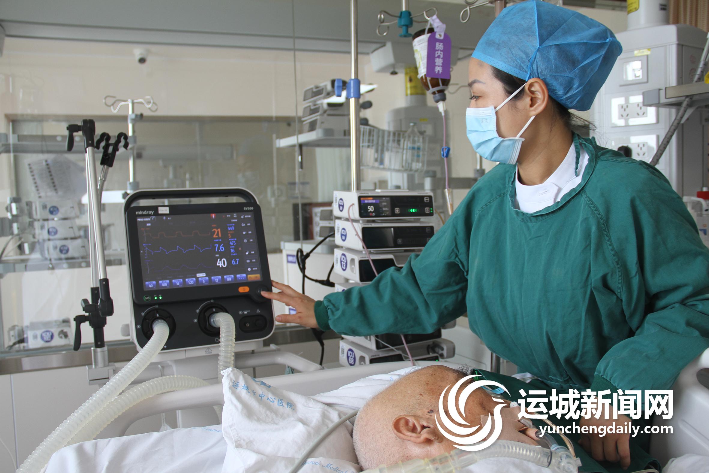 市中心医院的综合重症监护室里,一名年过七旬的患者被转进了病房。在经过经鼻高流量吸氧、无创机械通气治疗后,患者的血氧饱和度仍不能维持。情况危急,呼吸治疗师曲云云以最快速度调试好呼吸机,配合医护团队迅速完成气管插管。