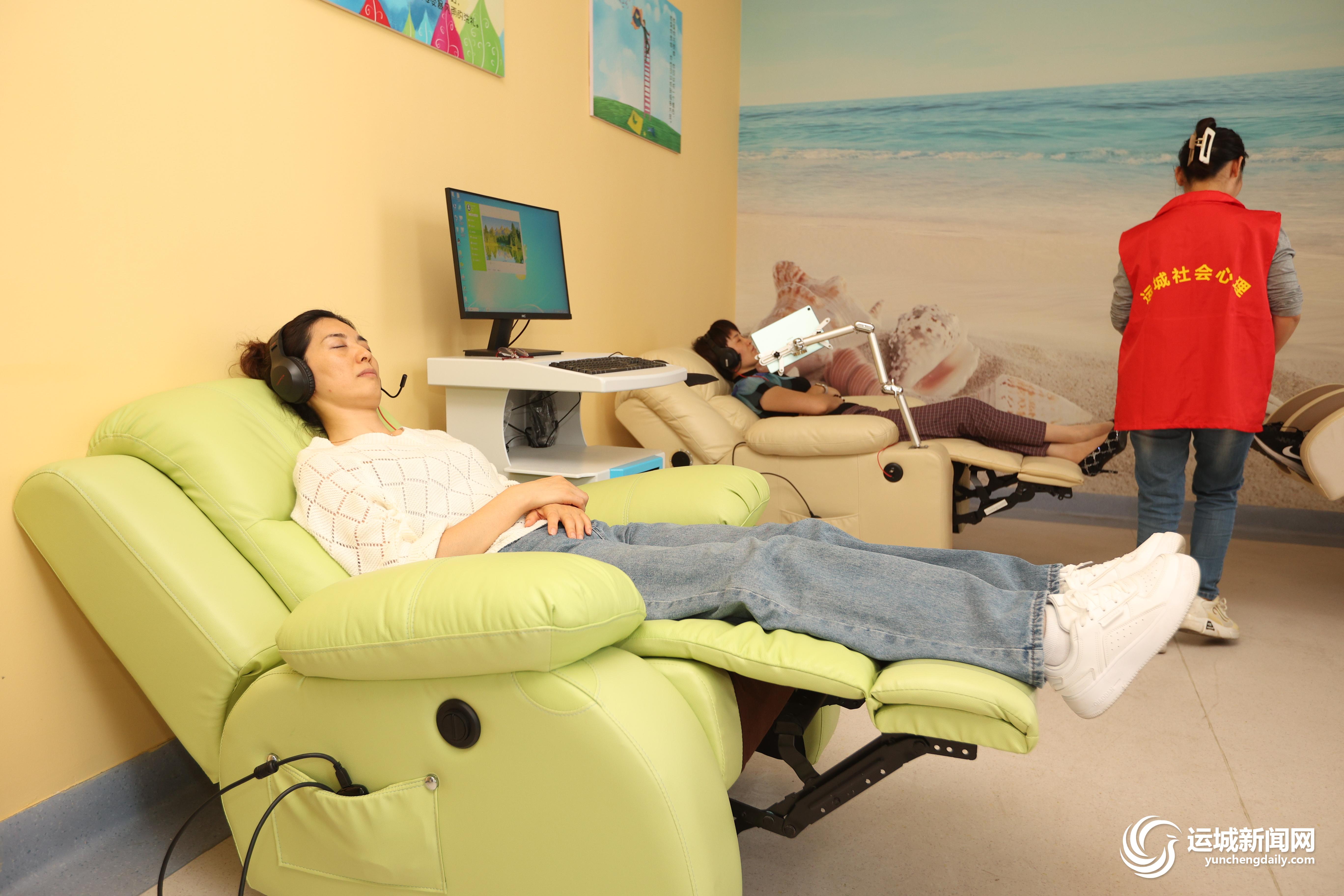 5月7日,护士在运城市社会心理服务中心进行心理放松体验。近年来,我市不断加强护士人文关怀,通过多种方式帮助护士舒缓压力,促进身心健康,营造尊重护士、关爱护士的浓厚氛围。 记者 景冬波 摄